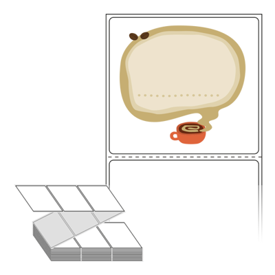 텍스트, 이미지, 도형, 바코드 등을 쉽게 출력 할 수 있으며 엑셀파일 등의 연동도 가능합니다. 라벨 모양대로 이미 칼선이 있기 때문에 출력 후 바로 떼어서 사용 하시면 됩니다.