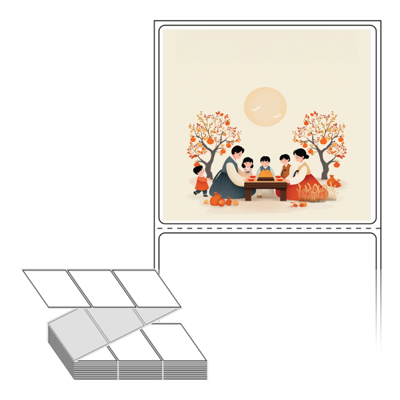 롤라벨보다 편리한 제트라벨, 규격코드: ZL7065, 디자인코드: DA1345(추석 가족의 식탁), 70 x 64.733 (mm)