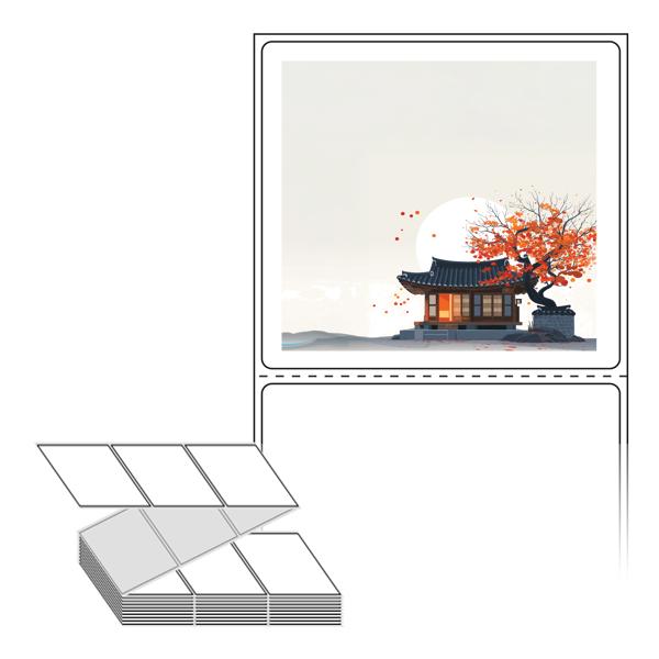 롤라벨보다 편리한 제트라벨, 규격코드: ZL7065, 디자인코드: DA1348(감나무가 있는 기와집2), 70 x 64.733 (mm)