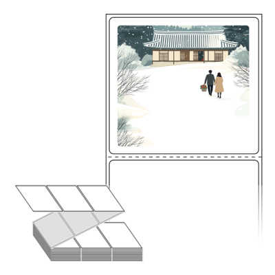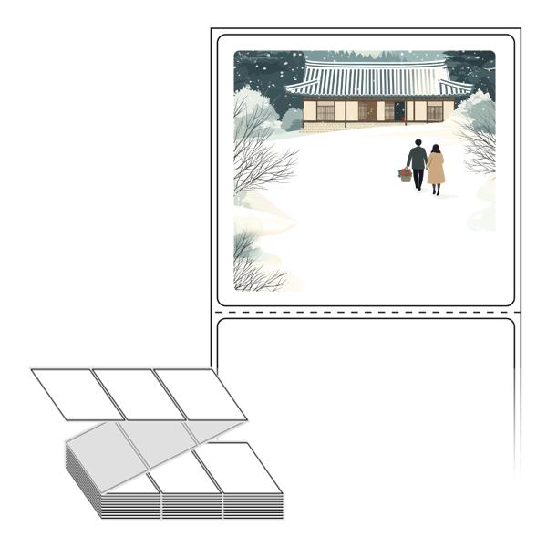 롤라벨보다 편리한 제트라벨, 규격코드: ZL7065, 디자인코드: DA1580(눈내린 귀향의 따뜻한 길), 70 x 64.733 (mm)