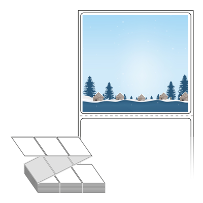 롤라벨보다 편리한 제트라벨, 규격코드: ZL7065, 디자인코드: DA210(눈내린 겨울의 숲속 마을), 70 x 64.733 (mm)