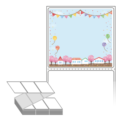 롤라벨보다 편리한 제트라벨, 규격코드: ZL7065, 디자인코드: DA585(우리마을 봄축제에 놀러오세요), 70 x 64.733 (mm)