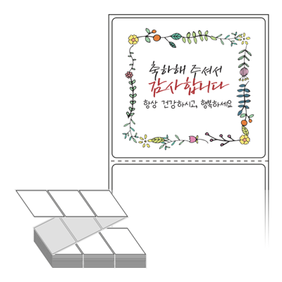 롤라벨보다 편리한 제트라벨, 규격코드: ZL7065, 디자인코드: FA064(축하해 주셔서 감사합니다), 70 x 64.733 (mm)