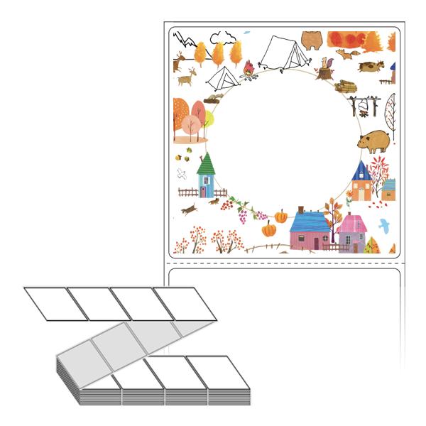 롤라벨보다 편리한 제트라벨, 규격코드: ZL7373, 디자인코드: DA1065(야외 캠핑장에서), 73 x 73 (mm)