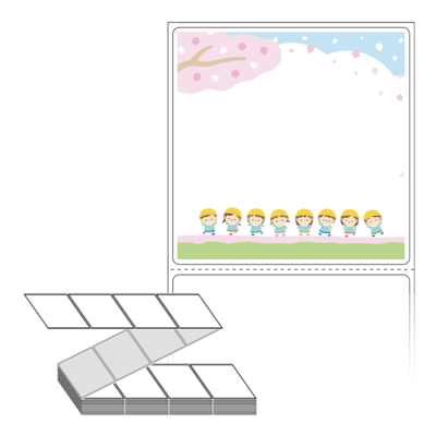 롤라벨보다 편리한 제트라벨, 규격코드: ZL7373, 디자인코드: DA1265(아이들의 봄 소풍), 73 x 73 (mm)