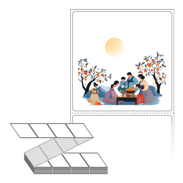 롤라벨보다 편리한 제트라벨, 규격코드: ZL7373, 디자인코드: DA1346(추석 가족의 식탁2), 73 x 73 (mm)