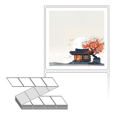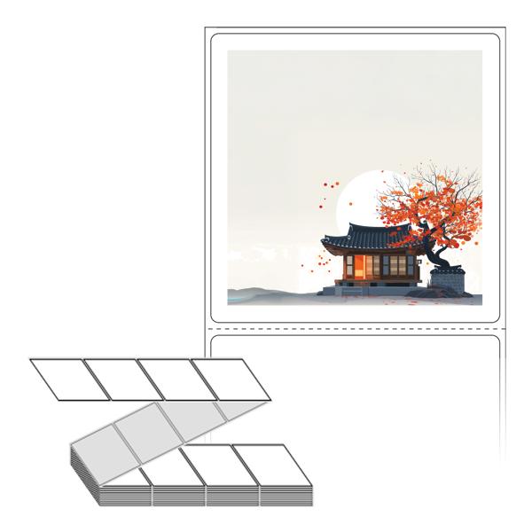 롤라벨보다 편리한 제트라벨, 규격코드: ZL7373, 디자인코드: DA1348(감나무가 있는 기와집2), 73 x 73 (mm)