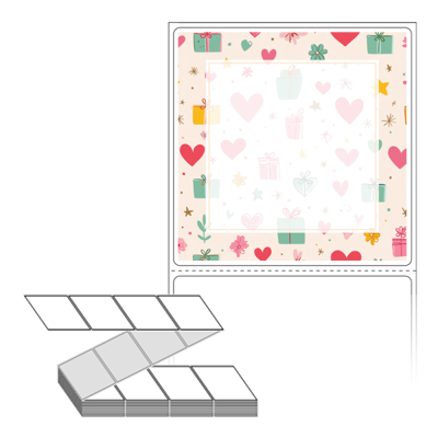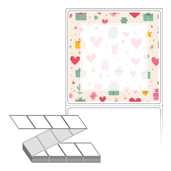롤라벨보다 편리한 제트라벨, 규격코드: ZL7373, 디자인코드: DA1393(선물 하트 포장지), 73 x 73 (mm)