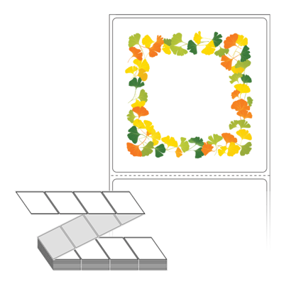 롤라벨보다 편리한 제트라벨, 규격코드: ZL7373, 디자인코드: DA1402(은행잎 프레임), 73 x 73 (mm)