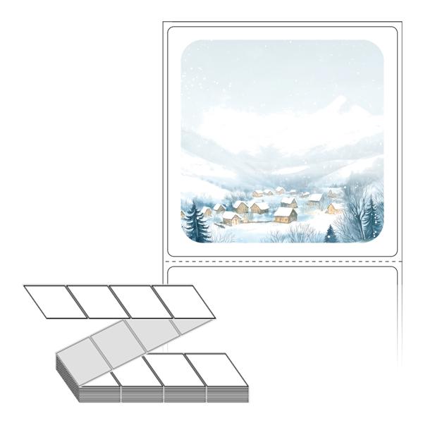 롤라벨보다 편리한 제트라벨, 규격코드: ZL7373, 디자인코드: DA1541(고요한 한겨울의 풍경을 보내드려요), 73 x 73 (mm)