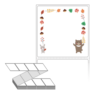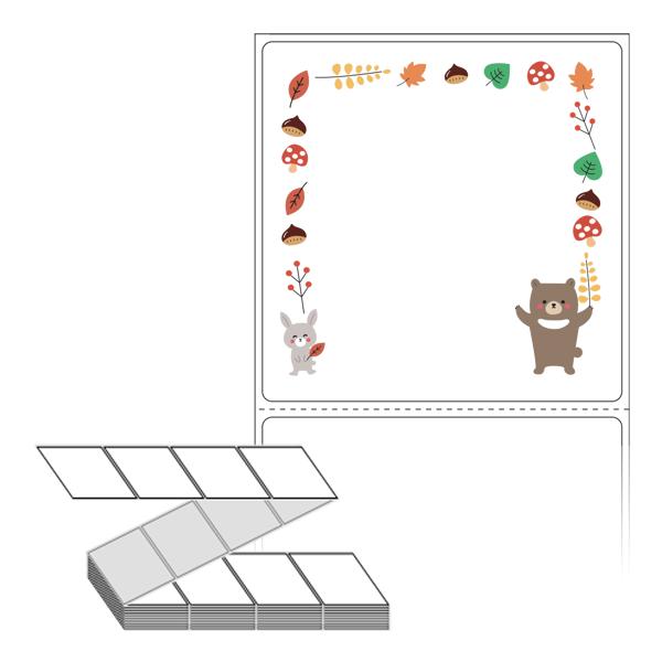 롤라벨보다 편리한 제트라벨, 규격코드: ZL7373, 디자인코드: DA388(숲속 친구들의 가을 잔치), 73 x 73 (mm)