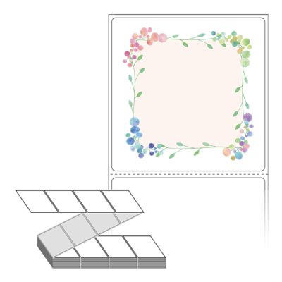 롤라벨보다 편리한 제트라벨, 규격코드: ZL7373, 디자인코드: DA769(파스텔톤 봄꽃 프레임), 73 x 73 (mm)