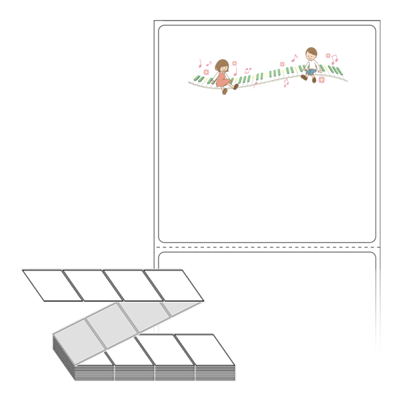 롤라벨보다 편리한 제트라벨, 규격코드: ZL7373, 디자인코드: DN078(멜로디 속에 아이들), 73 x 73 (mm)