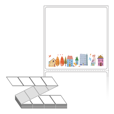 롤라벨보다 편리한 제트라벨, 규격코드: ZL7373, 디자인코드: DP109(동화속 거리), 73 x 73 (mm)