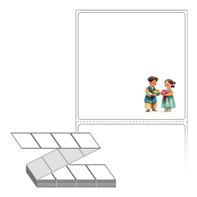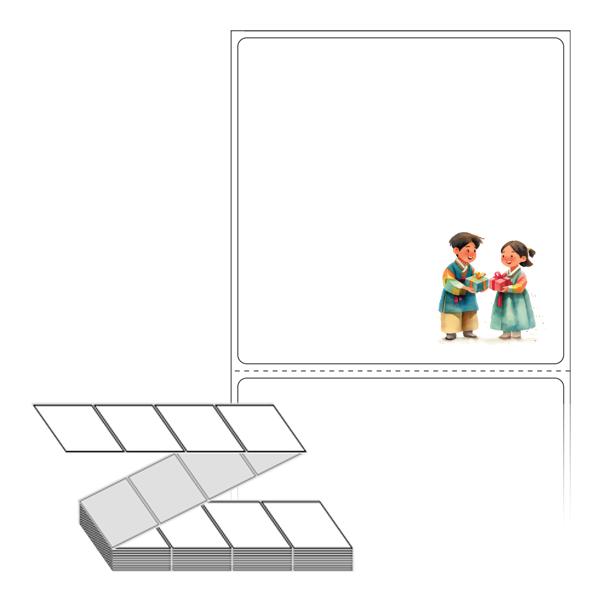 롤라벨보다 편리한 제트라벨, 규격코드: ZL7373, 디자인코드: DV205(두근두근 추석 선물 교환), 73 x 73 (mm)