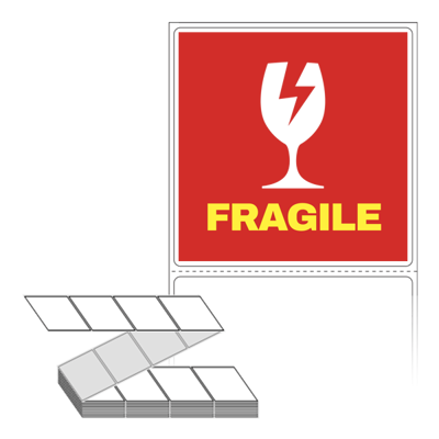 롤라벨보다 편리한 제트라벨, 규격코드: ZL7373, 디자인코드: FA036(FRAGILE), 73 x 73 (mm)