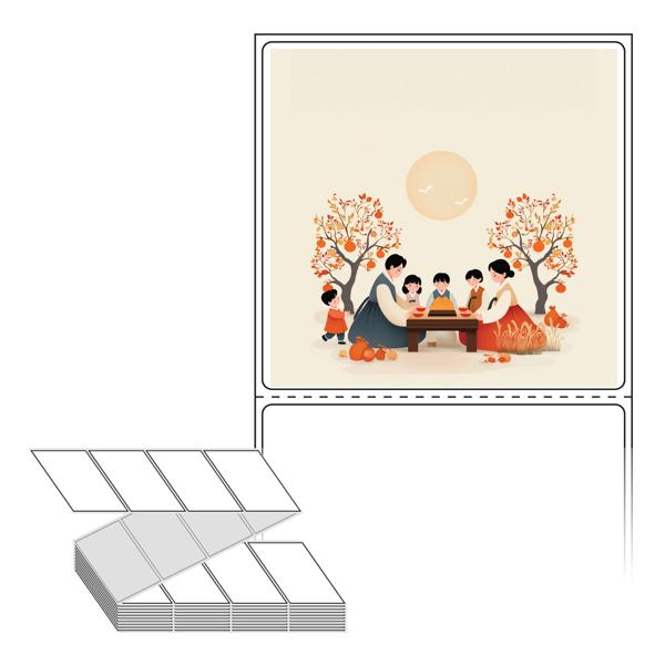 롤라벨보다 편리한 제트라벨, 규격코드: ZL7573, 디자인코드: DA1345(추석 가족의 식탁), 75 x 73 (mm)