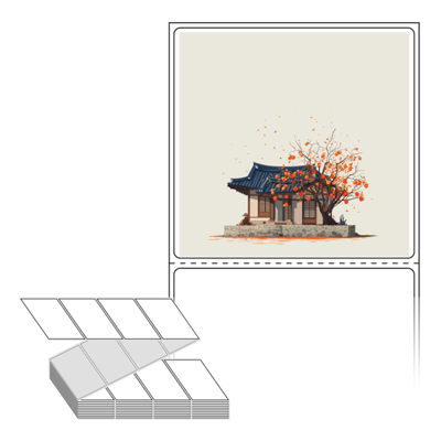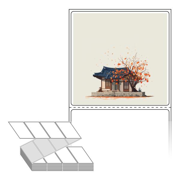 롤라벨보다 편리한 제트라벨, 규격코드: ZL7573, 디자인코드: DA1347(감나무가 있는 기와집), 75 x 73 (mm)