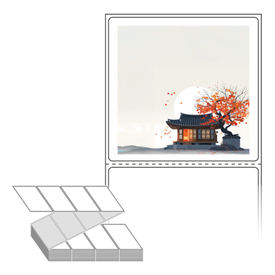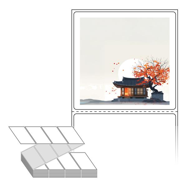 롤라벨보다 편리한 제트라벨, 규격코드: ZL7573, 디자인코드: DA1348(감나무가 있는 기와집2), 75 x 73 (mm)