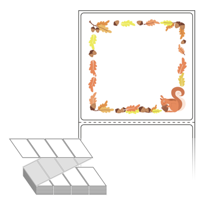 롤라벨보다 편리한 제트라벨, 규격코드: ZL7573, 디자인코드: DA358(도토리를 사랑한 다람쥐), 75 x 73 (mm)