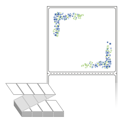 롤라벨보다 편리한 제트라벨, 규격코드: ZL7573, 디자인코드: DA555(푸른 꽃잎의 전설), 75 x 73 (mm)
