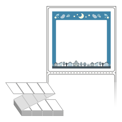 롤라벨보다 편리한 제트라벨, 규격코드: ZL7573, 디자인코드: DA702(알쏭달쏭한 푸른밤 이야기), 75 x 73 (mm)