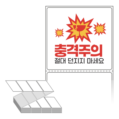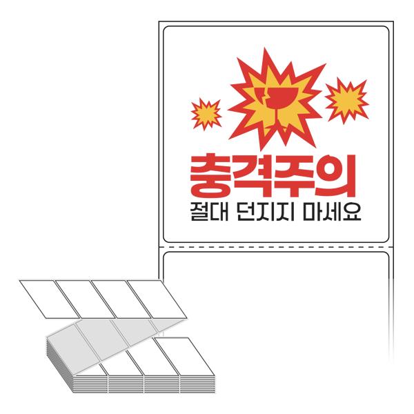 롤라벨보다 편리한 제트라벨, 규격코드: ZL7573, 디자인코드: FA130(충격주의 절대 던지지 마세요), 75 x 73 (mm)