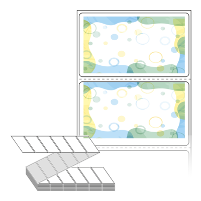 텍스트, 이미지, 도형, 바코드 등을 쉽게 출력 할 수 있으며 엑셀파일 등의 연동도 가능합니다. 라벨 모양대로 이미 칼선이 있기 때문에 출력 후 바로 떼어서 사용 하시면 됩니다.