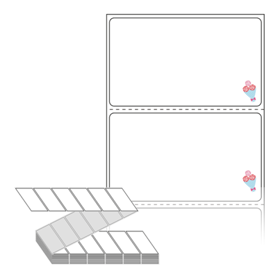 텍스트, 이미지, 도형, 바코드 등을 쉽게 출력 할 수 있으며 엑셀파일 등의 연동도 가능합니다. 라벨 모양대로 이미 칼선이 있기 때문에 출력 후 바로 떼어서 사용 하시면 됩니다.