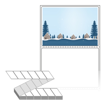 롤라벨보다 편리한 제트라벨, 규격코드: ZL8056, 디자인코드: DA470(눈내린 겨울의 숲속 마을), 80 x 56.267 (mm)