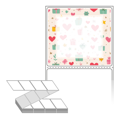 롤라벨보다 편리한 제트라벨, 규격코드: ZL8073, 디자인코드: DA1393(선물 하트 포장지), 80 x 73 (mm)