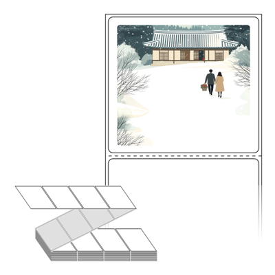 롤라벨보다 편리한 제트라벨, 규격코드: ZL8073, 디자인코드: DA1580(눈내린 귀향의 따뜻한 길), 80 x 73 (mm)
