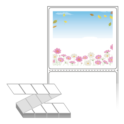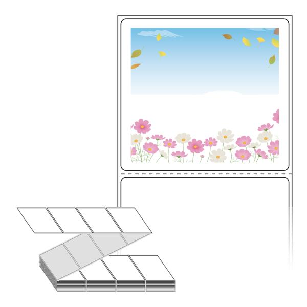 롤라벨보다 편리한 제트라벨, 규격코드: ZL8073, 디자인코드: DA374(코스모스, 낙엽, 푸른하늘), 80 x 73 (mm)
