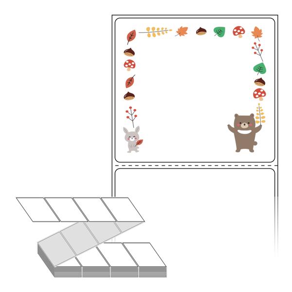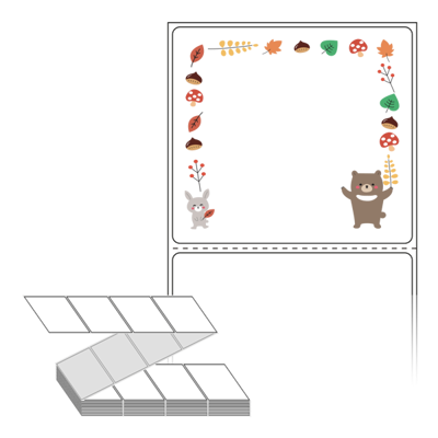 롤라벨보다 편리한 제트라벨, 규격코드: ZL8073, 디자인코드: DA388(숲속 친구들의 가을 잔치), 80 x 73 (mm)