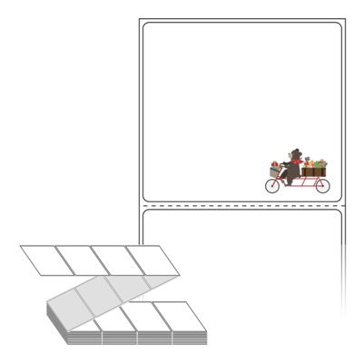 롤라벨보다 편리한 제트라벨, 규격코드: ZL8073, 디자인코드: DV018(선물 배달곰), 80 x 73 (mm)