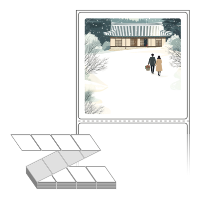 롤라벨보다 편리한 제트라벨, 규격코드: ZL8080, 디자인코드: DA1580(눈내린 귀향의 따뜻한 길), 80 x 79.55 (mm)