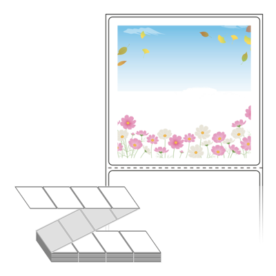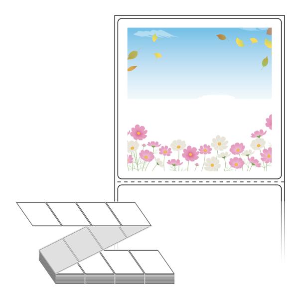 롤라벨보다 편리한 제트라벨, 규격코드: ZL8080, 디자인코드: DA374(코스모스, 낙엽, 푸른하늘), 80 x 79.55 (mm)