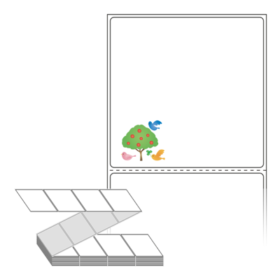 롤라벨보다 편리한 제트라벨, 규격코드: ZL8080, 디자인코드: DX056(나무와 행복한 새들), 80 x 79.55 (mm)