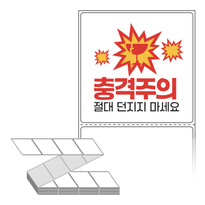 롤라벨보다 편리한 제트라벨, 규격코드: ZL8080, 디자인코드: FA130(충격주의 절대 던지지 마세요), 80 x 79.55 (mm)