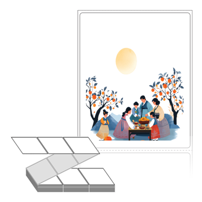 롤라벨보다 편리한 제트라벨, 규격코드: ZL8098, 디자인코드: DA1346(추석 가족의 식탁2), 80 x 98 (mm)