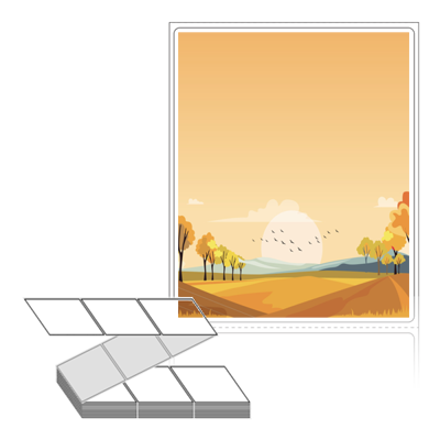 텍스트, 이미지, 도형, 바코드 등을 쉽게 출력 할 수 있으며 엑셀파일 등의 연동도 가능합니다. 라벨 모양대로 이미 칼선이 있기 때문에 출력 후 바로 떼어서 사용 하시면 됩니다.