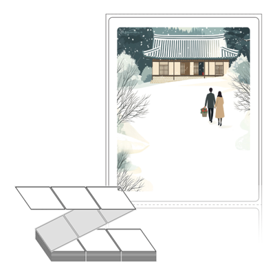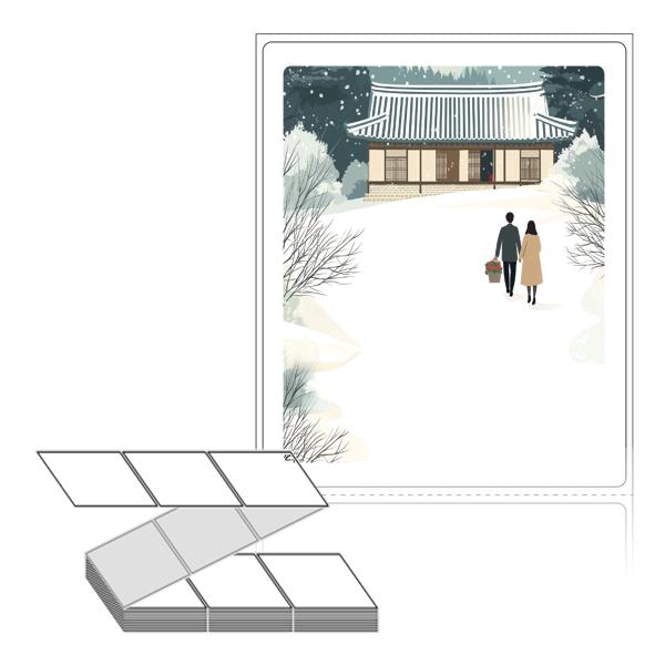롤라벨보다 편리한 제트라벨, 규격코드: ZL8098, 디자인코드: DA1580(눈내린 귀향의 따뜻한 길), 80 x 98 (mm)