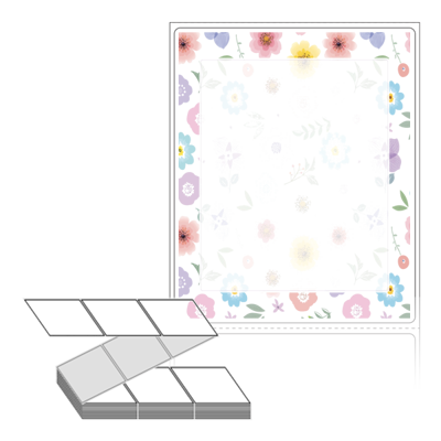 롤라벨보다 편리한 제트라벨, 규격코드: ZL8098, 디자인코드: DA332(플라워 패턴 프레임), 80 x 98 (mm)