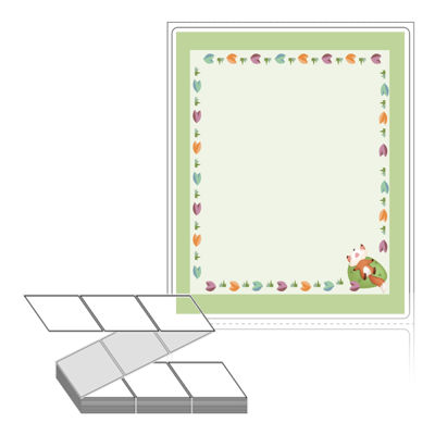 디자인 라벨/디자인 태그는 칼선만 들어가 있는 기존 제품과 달리, 프레임, 캐릭터, 배경 등이 특수 장비를 통해 뛰어난 품질로 미리 인쇄가 되어 있는 제품입니다. 인쇄가 되어 있지 않은 부분만 디자인 해서 프린터에서 출력하여 사용 하시면 됩니다.