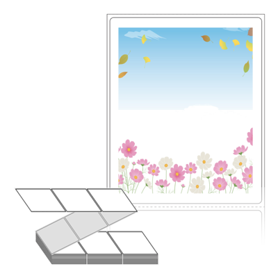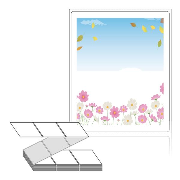 롤라벨보다 편리한 제트라벨, 규격코드: ZL8098, 디자인코드: DA374(코스모스, 낙엽, 푸른하늘), 80 x 98 (mm)