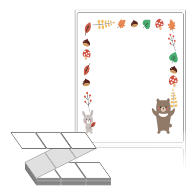 롤라벨보다 편리한 제트라벨, 규격코드: ZL8098, 디자인코드: DA388(숲속 친구들의 가을 잔치), 80 x 98 (mm)