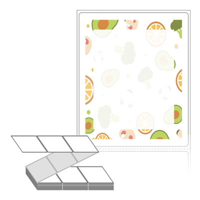 텍스트, 이미지, 도형, 바코드 등을 쉽게 출력 할 수 있으며 엑셀파일 등의 연동도 가능합니다. 라벨 모양대로 이미 칼선이 있기 때문에 출력 후 바로 떼어서 사용 하시면 됩니다.