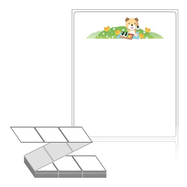 롤라벨보다 편리한 제트라벨, 규격코드: ZL8098, 디자인코드: DN083(봄 소풍나온 곰과 병아리들), 80 x 98 (mm)
