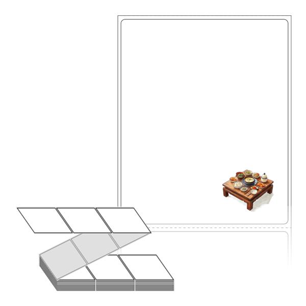 텍스트, 이미지, 도형, 바코드 등을 쉽게 출력 할 수 있으며 엑셀파일 등의 연동도 가능합니다. 라벨 모양대로 이미 칼선이 있기 때문에 출력 후 바로 떼어서 사용 하시면 됩니다.