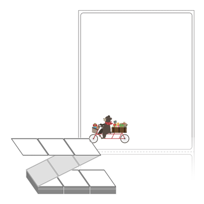 롤라벨보다 편리한 제트라벨, 규격코드: ZL8098, 디자인코드: DX018(선물 배달곰), 80 x 98 (mm)